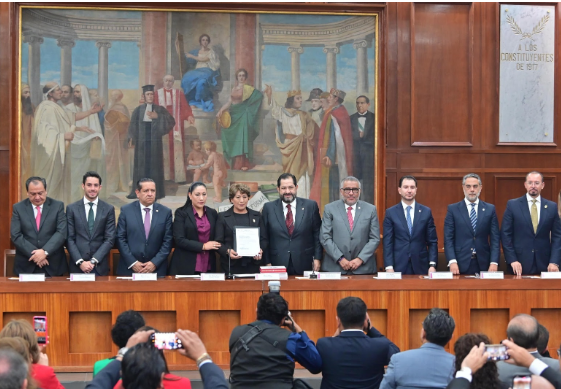 En el recinto legislativo, la recibieron el legislador Francisco Vázquez Rodríguez, presidente de la Junta de Coordinación Política, y la legisladora Martha Azucena Camacho Reynoso, presidenta de la Mesa Directiva del Congreso mexiquense, quienes atestiguaron la entrega del documento y destacaron la relevancia de este ejercicio para evaluar los resultados de este segundo año de gestión.