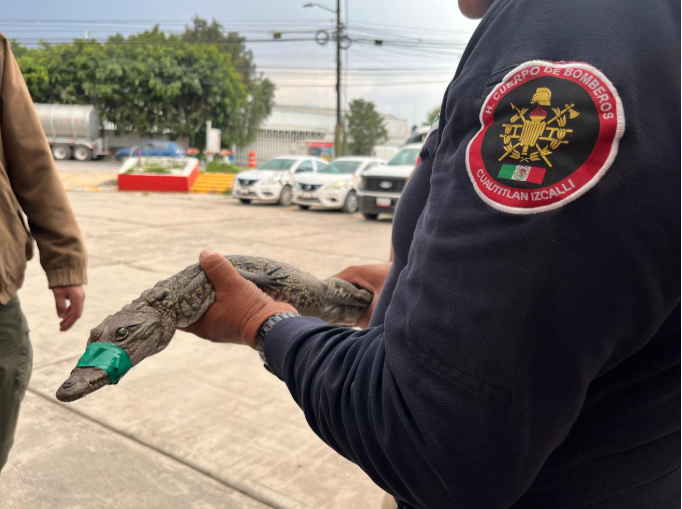 Cuautitlán Izcalli, Estado de México.- Elementos de la Coordinación Municipal de Protección Civil y Bomberos de Cuautitlán Izcalli aseguraron la tarde de este miércoles un cocodrilo que se encontraba en un domicilio particular en la zona de Lago de Guadalupe.