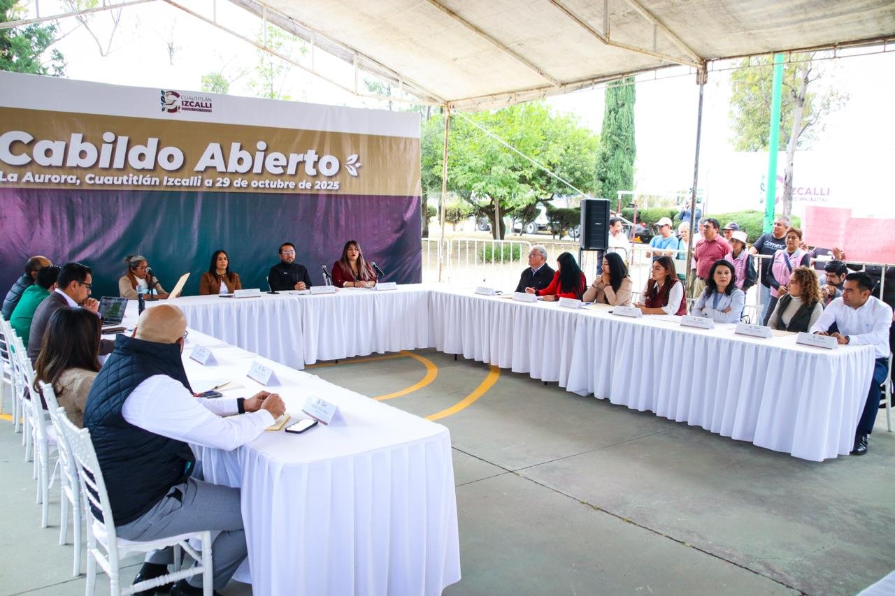 Cuautitlán Izcalli, Edoméx.- El Gobierno Municipal de Cuautitlán Izcalli celebró la Vigésima Séptima Sesión Pública del Ayuntamiento en modalidad de Cabildo Abierto, realizada en las canchas de Cerrada 20 de Noviembre, en la comunidad de La Aurora. Durante el encuentro, integrantes del cuerpo edilicio escucharon las peticiones de habitantes izcallenses que, por años, habían permanecido sin respuesta por parte de administraciones anteriores.