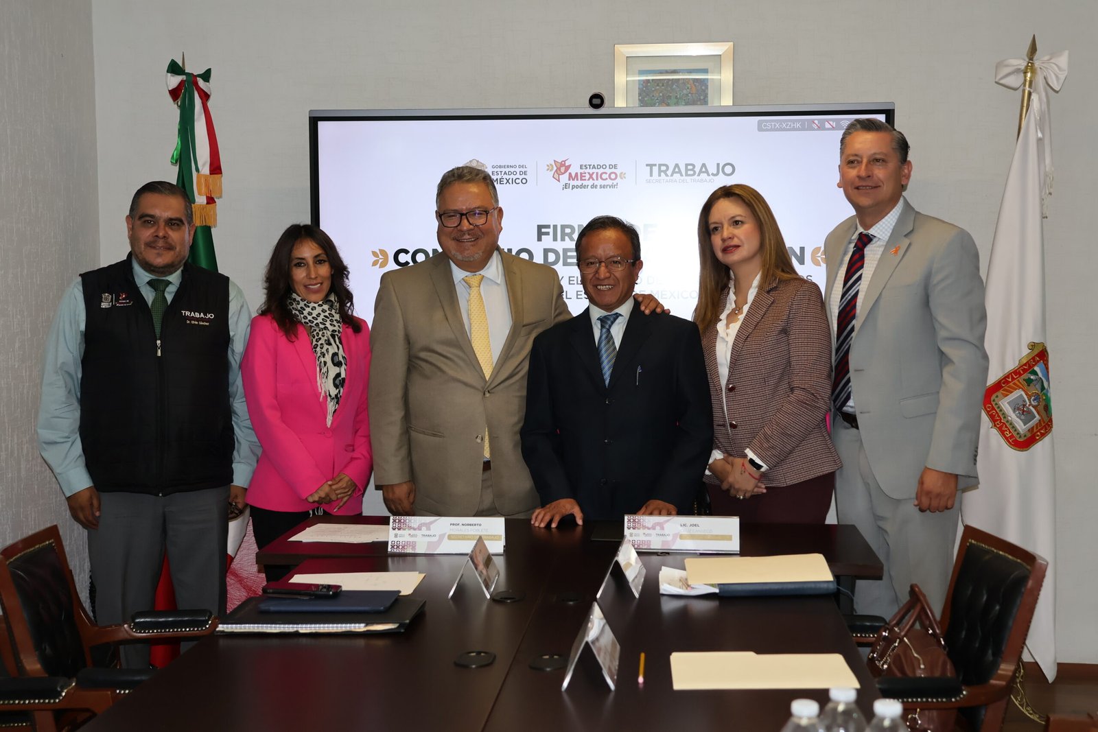 TOLUCA, Estado de México.— En un esfuerzo por fortalecer los mecanismos de conciliación y agilizar los juicios laborales en beneficio de los trabajadores mexiquenses, el Gobierno del Estado de México, a través de la Secretaría del Trabajo, firmó convenios de colaboración con la Junta de Caminos y con el Colegio de Estudios Científicos y Tecnológicos del Estado de México (CECyTEM). Con estas adiciones, la actual administración suma un total de 24 acuerdos firmados desde su inicio.