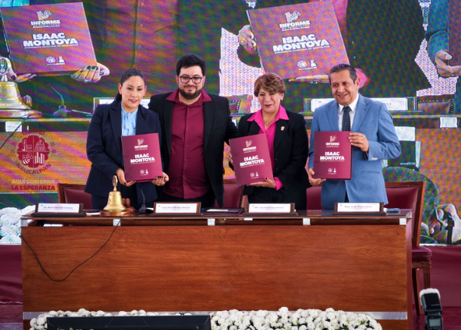 Naucalpan de Juárez, Méx.— En una sesión solemne de Cabildo que desbordó la explanada del Palacio Municipal con cerca de 10 mil naucalpenses, el Alcalde Isaac Montoya Márquez, acompañado de la Gobernadora del Estado de México, Delfina Gómez Álvarez, rindió su Primer Informe de Resultados, marcando lo que calificó como avances históricos para la Transformación de Naucalpan.