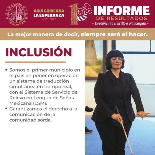 «En Naucalpan seguimos trabajando para derribar barreras: hoy somos el primer municipio del país con un sistema de traducción simultánea en LSM, una herramienta que garantiza el derecho a la comunicación de nuestra comunidad sorda», se destacó.