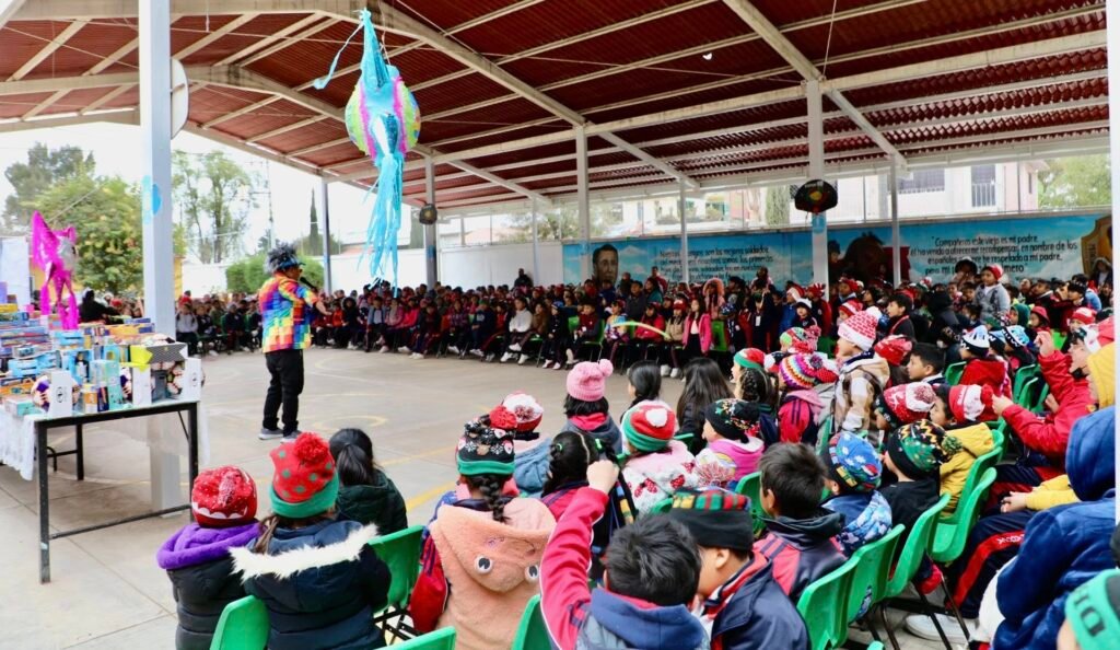 Durante la visita, el legislador estuvo acompañado por el Dr. Magdaleno Reyes Ángeles, así como por autoridades educativas, quienes atestiguaron la entrega de juguetes y la tradicional partición de la rosca de Reyes. La jornada fue amenizada por un espectáculo de payasos que brindó momentos de recreación a las alumnas y alumnos del plantel.