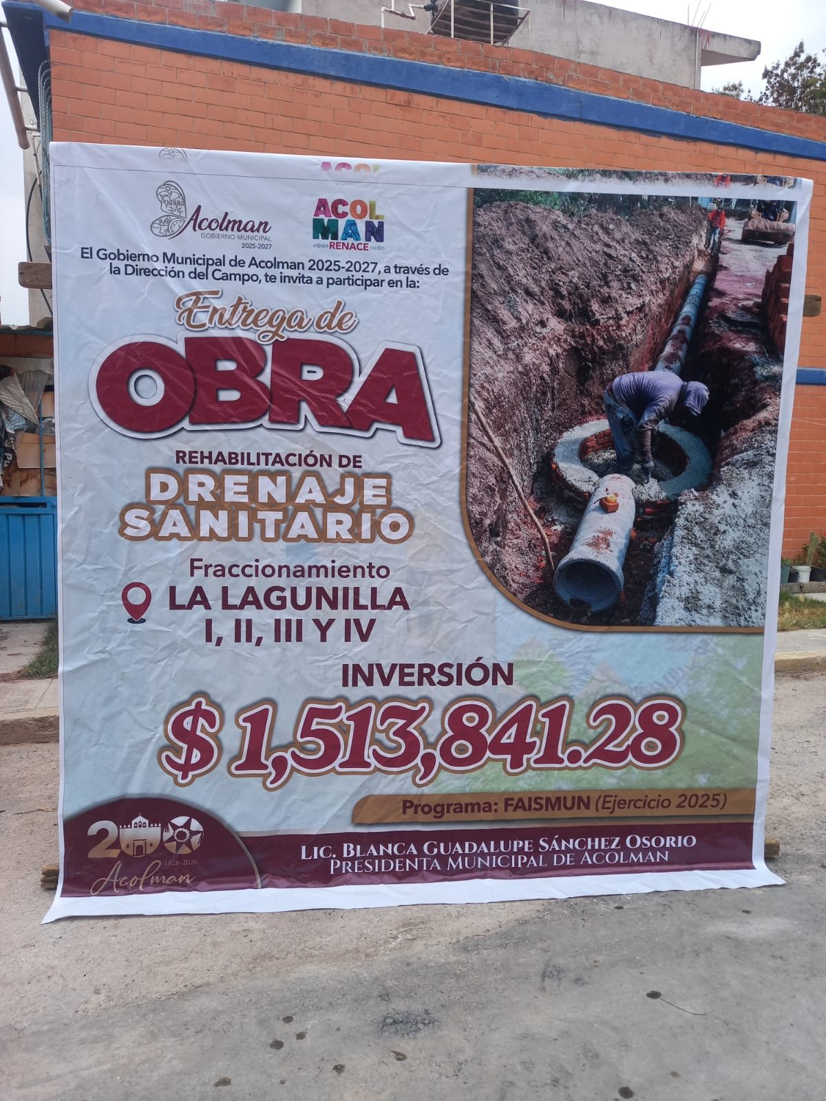 ACOLMAN, ESTADO DE MÉXICO. – En respuesta a una demanda histórica de los habitantes de la zona de Lagunillas, la presidenta municipal de Acolman, Lic. Blanca Guadalupe Sánchez Osorio, encabezó la entrega oficial de la obra de rehabilitación y ampliación del sistema de drenaje sanitario en las secciones 1, 2, 3 y 4. Esta infraestructura busca dar solución definitiva a los problemas de inundaciones que afectaban el patrimonio de las familias durante la temporada de lluvias.