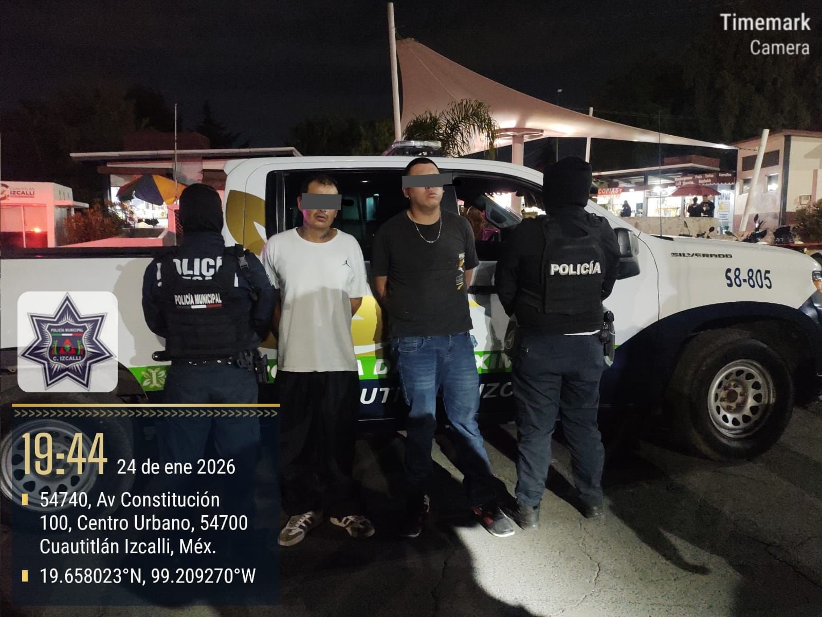 En una oportuna intervención derivada de los operativos de vigilancia y recorridos preventivos en el municipio de Cuautitlán Izcalli, elementos de la Policía Municipal detuvieron a dos hombres presuntamente responsables del delito de robo con violencia a transporte público. Los hechos se desencadenaron cuando el personal operativo atendió el llamado de auxilio de un ciudadano, quien denunció haber sido asaltado momentos antes mientras se trasladaba en una unidad de transporte.