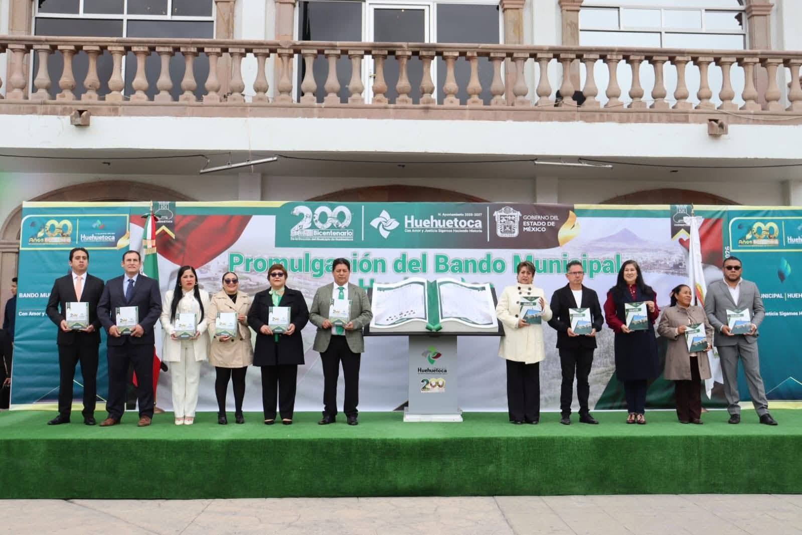 HUEHUETOCA, MÉXICO. – En un acto solemne marcado por el compromiso civil y la visión de futuro, el Gobierno de Huehuetoca Contigo 2025-2027 realizó la promulgación del Bando Municipal 2026. La ceremonia, presidida por el alcalde constitucional Juan Manuel López Adán, se llevó a cabo en el marco del 109 aniversario de la Constitución Política de los Estados Unidos Mexicanos, estableciendo este documento como la columna vertebral para el orden y la armonía en el municipio.