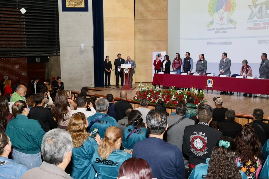 Bajo el lema «Centenario de la Fraternidad y Unidad Sindical», el Auditorio de la FES Iztacala fue el escenario donde el edil, en coordinación con el Sindicato de Maestros al Servicio del Estado de México (SMSEM), dio inicio a estas jornadas que buscan enaltecer el espíritu de colaboración y el bienestar integral de los educadores.