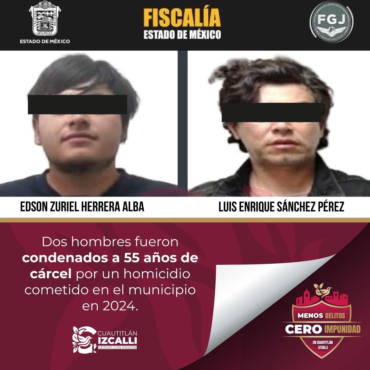 - Una sentencia condenatoria de 55 años de prisión para dos responsables de un homicidio perpetrado en noviembre de 2024.