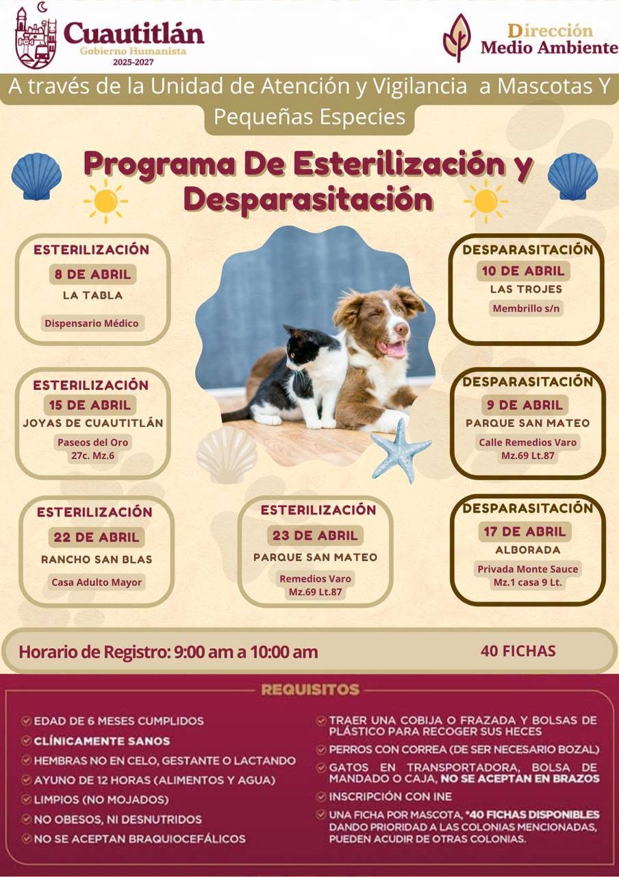 El Gobierno Municipal hace un llamado a los propietarios de perros y gatos para que participen activamente cumpliendo con los requisitos de salud de sus mascotas, tales como tener al menos seis meses de edad y estar clínicamente sanos. Con este programa, Cuautitlán se consolida como un municipio solidario y consciente que prioriza la prevención como herramienta fundamental para la sana convivencia entre los habitantes y sus mascotas.