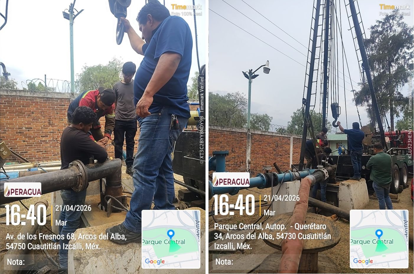 Cuautitlán Izcalli, Edoméx.-El Gobierno Municipal de Cuautitlán Izcalli, a través del organismo Operagua, informó que continúan los trabajos para el restablecimiento del pozo Chopos, ubicado en la colonia Centro Urbano. Actualmente, se lleva a cabo una prueba de aforo que consiste en la extracción de agua y el monitoreo del acuífero durante un periodo de 24 horas.